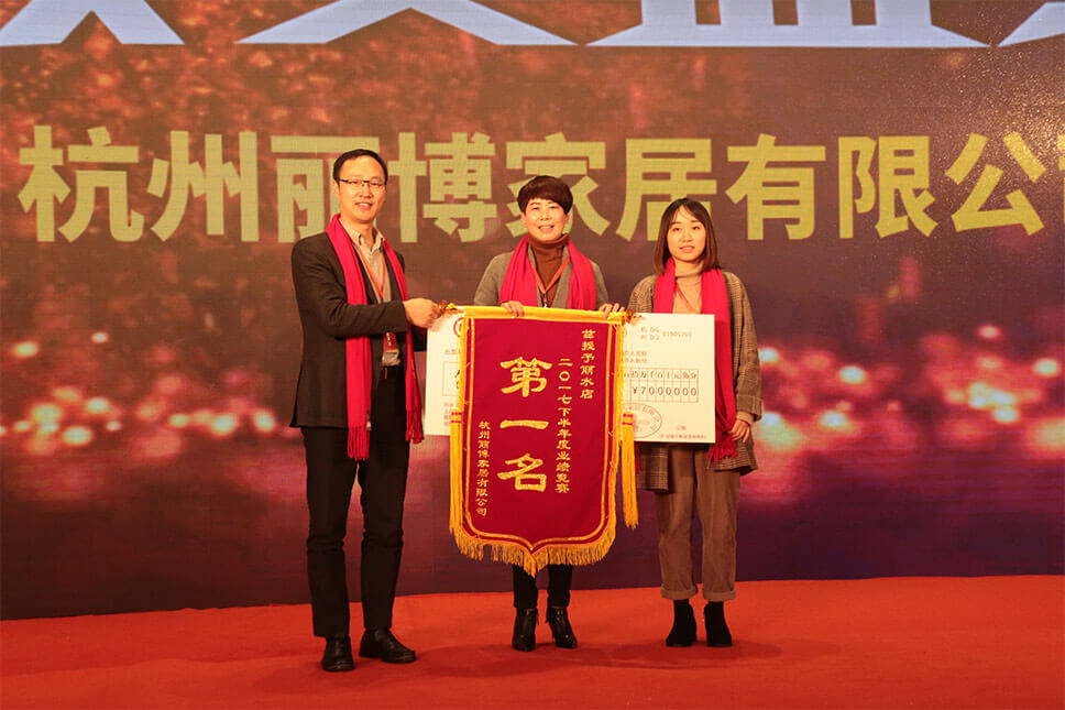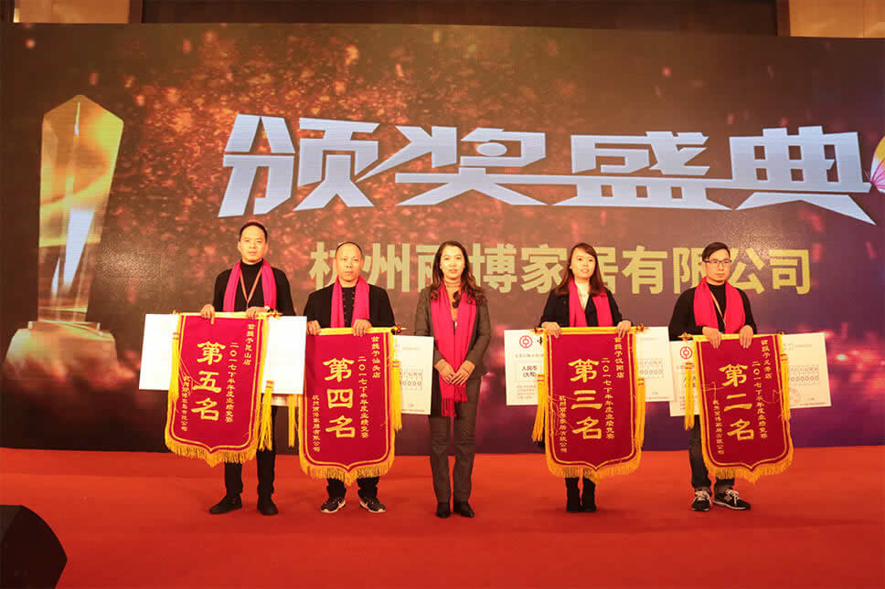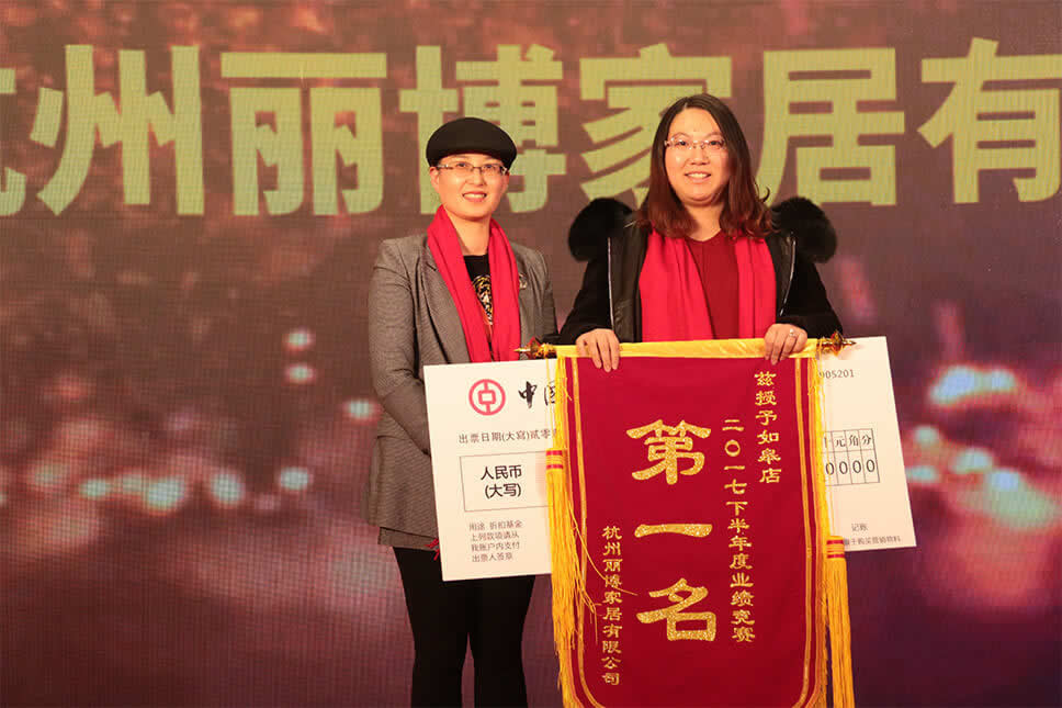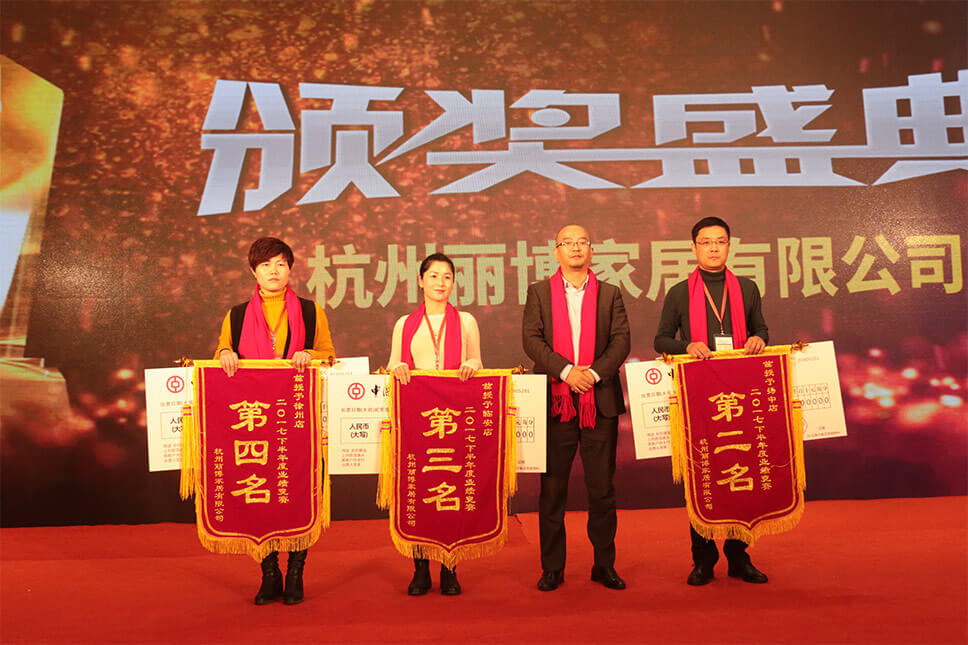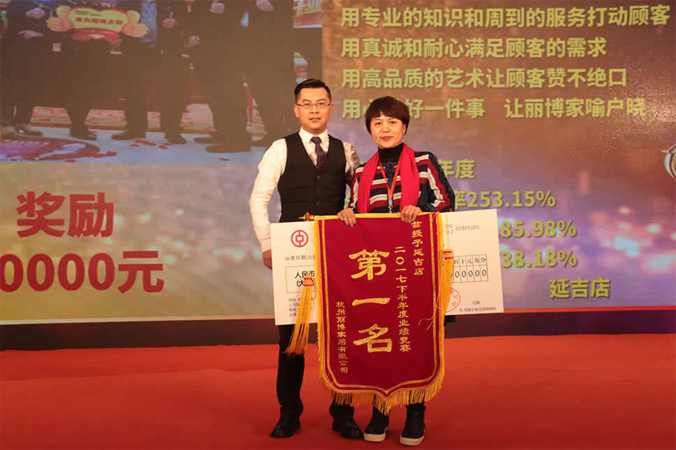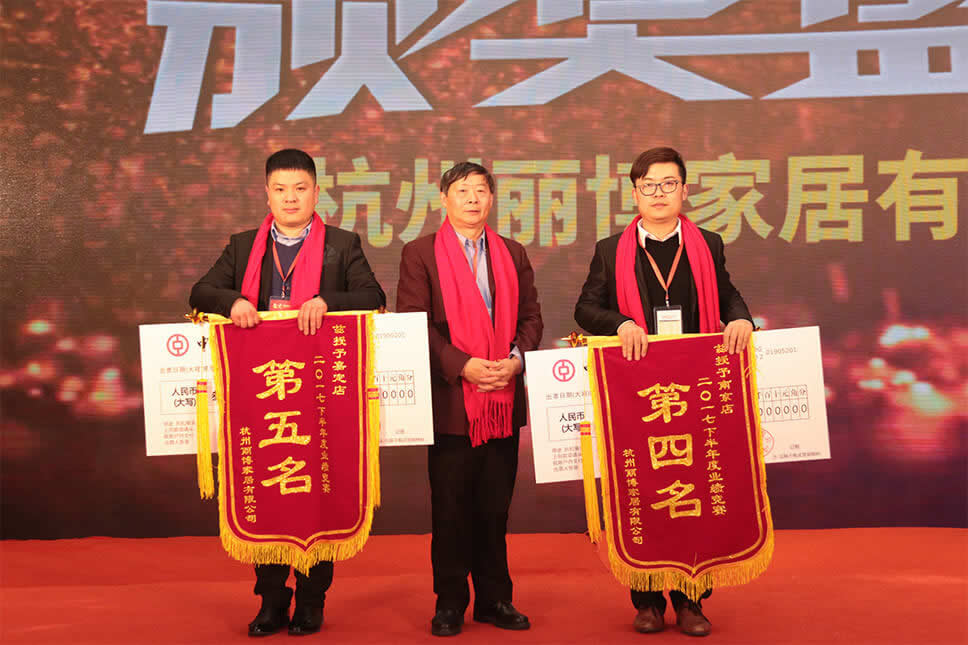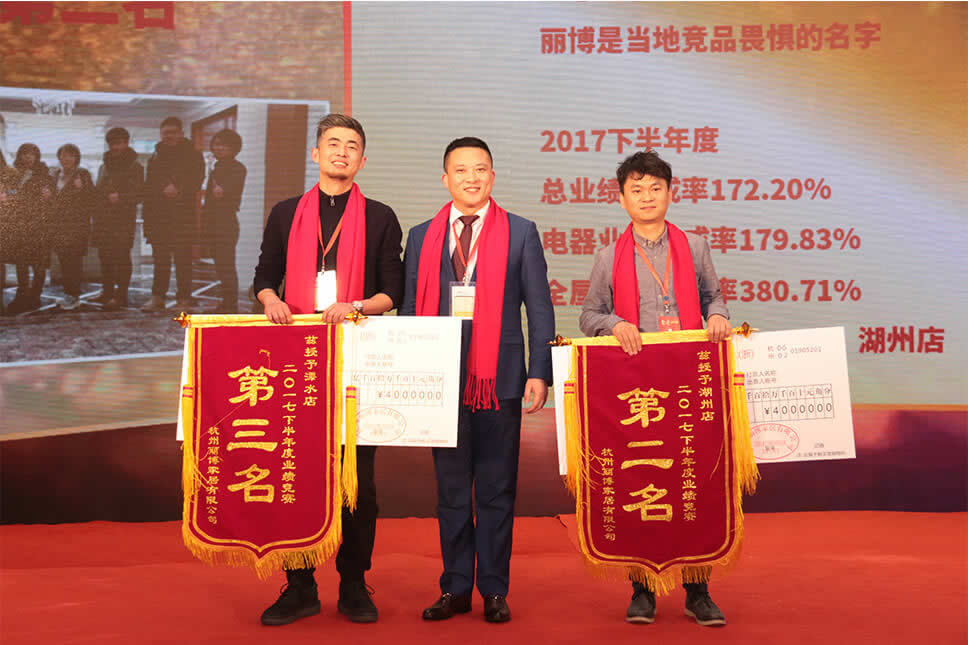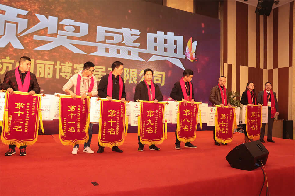2017年丽博家居颁奖盛典环节对15名年度总业绩目标50万(含)-100万、8名年度总业绩目标100万(含)-150万、5名年度总业绩目标150万以上的优秀经销商们进行表彰奖励!优秀经销商代表无不表示,2018将坚定信念全力以赴,跟着公司的步伐共迈辉煌,稳固当地市场第一地位。