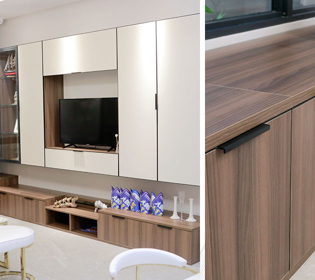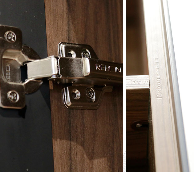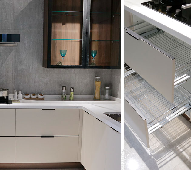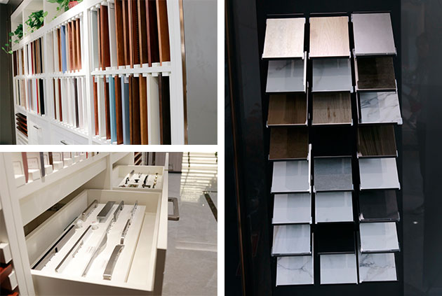 数处五金、门板、柜体、台面等配材区,供消费者定制选择。
