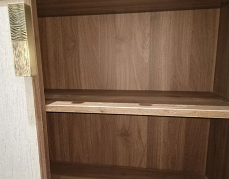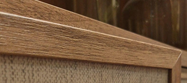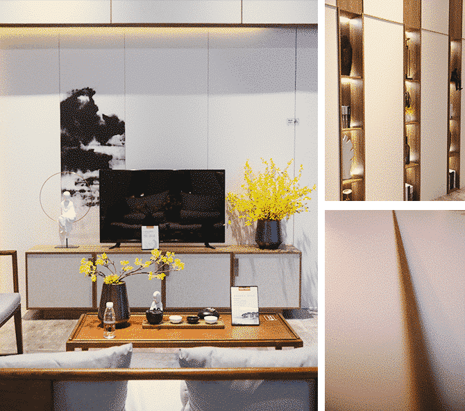 柜体使用御品木双饰面板,御品木的深色调外观与原生态木纹增加空间稳重大气的中式气质。