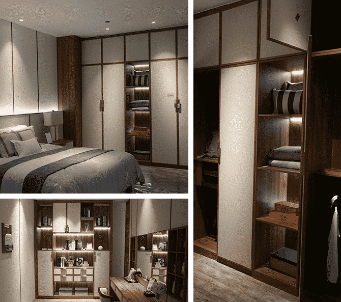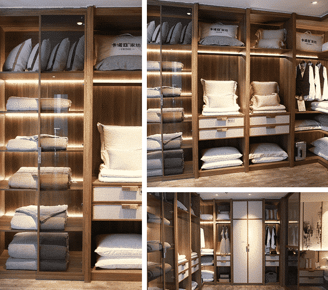 烟雨江南系列柜类产品采用到顶设计,最大程度增加储物空间。设置不同柜格区间,如:收纳区、挂衣区、置物架,格子架等,布局合理,能满足各类收纳需求。