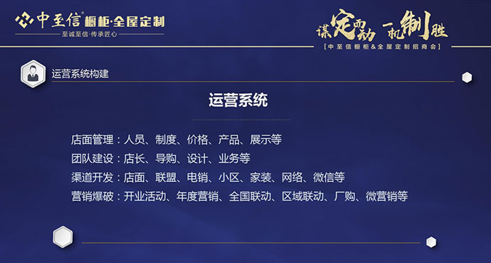 中至信对新加盟店运营有哪些帮扶计划?运营中心总监杨凌杰以牛商帮扶案例系统的介绍了加盟店的培训帮扶体系,中至信从店面管理、团队建设、渠道开发、营销爆破四个方向,构建起成熟的运营系统,帮助经销商完成店面整体规划和人员组建培训。