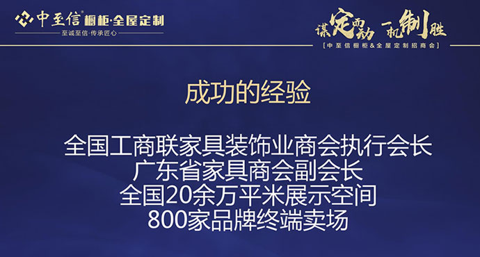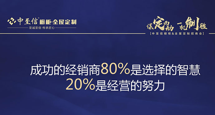 作为中国最早一批的成品家具品牌,中至信在中国家喻户晓,品牌知名度十分高,而“中至信”这个品牌名就是根据创始人陈中信的名字而来,取“诚信为本”的含义,将其作为企业发展的核心理念。2016年,中至信由成品家具向全屋定制转型、开启大家居时代,依靠“诚信为本”的品牌理念,期望招募全国至诚至信之士,共同传承匠心。短短几年,中至信的全屋定制项目发展十分迅速,奠定其在全屋定制领域的市场占有率。2018年8月26日,中至信橱柜&全屋定制秋季招商会一经召开,便好评不断。