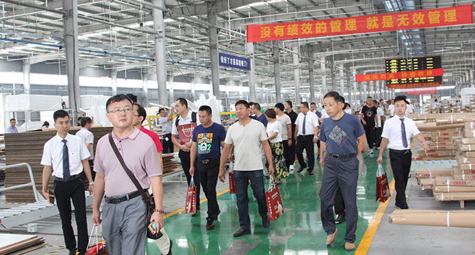 橱衣柜招商中心总监关进山先生向来宾介绍中至信产品的生产工艺流程,在参观与讲解中,来宾们对中至信家居产品品类、生产工艺有了更深刻的认知,对中至信后端生产保障力量有了更多信心。