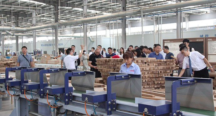 橱衣柜招商中心总监关进山先生向来宾介绍中至信产品的生产工艺流程