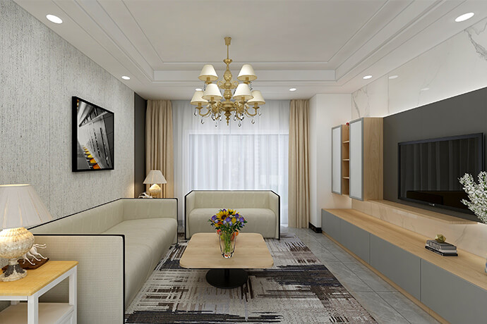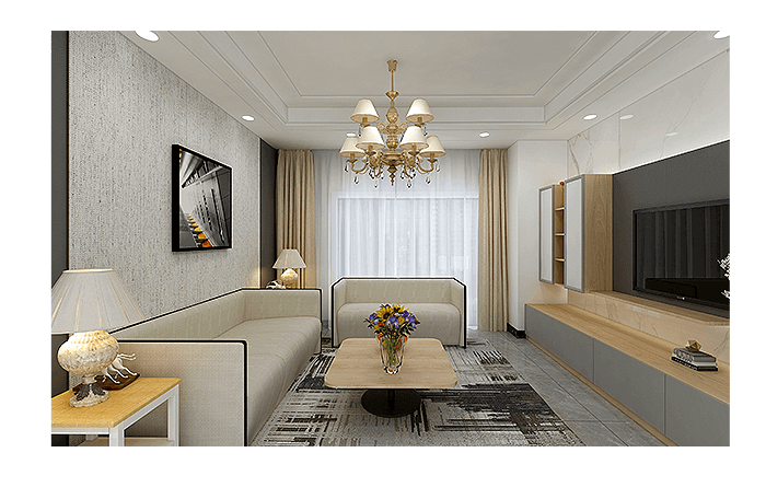 客厅选用现代简约风格的印象白,搭配暖色调的天然樱桃,改变简约风的高冷感,灰色风之谷的点缀,让空间瞬间多了一份动感和时尚气质。