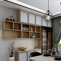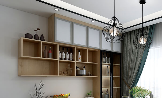 门板造型灵感源自隐形战斗机,现代斜面造型+直角铣型,缩小门板边框。其印象白与灰色风之谷的经典简约混搭,展现出浓郁的现代简约时尚风。
