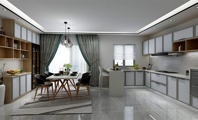 开放式格局,高级灰搭配简约白、暖木色,让厨房更加宽敞整洁,也更明亮通透。