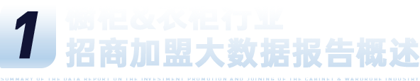 为进一步助力企业及加盟商充分了解家居行业各细分品类发展状况及趋势,解读招商加盟现状,家居建材行业门户中华建材网携旗下中华橱柜网和中华衣柜网,严格过滤全网大数据,进行全网数据采集、大规模调研及专业分析,通过大数据整合进行多维度比较,着力于橱柜&衣柜品类,以数据报告形式,为企业招商及投资客加盟提供新助力。