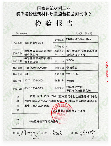 内部胶水为兔宝宝自主研发的大豆植物胶,E0级环保等级,甲醛释放量≤0.025mg/立方米,绿色健康无污染。