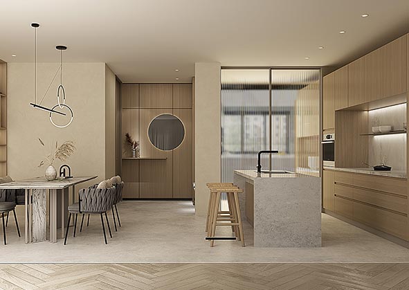 产品设计利用水泥、原木等自然设计元素、留白的布局、自然质感的取材、意境重于形式的装饰,为业主打造了一个远离都市喧嚣,可以观心、品茶、赏画、听花落花开的修心之所。